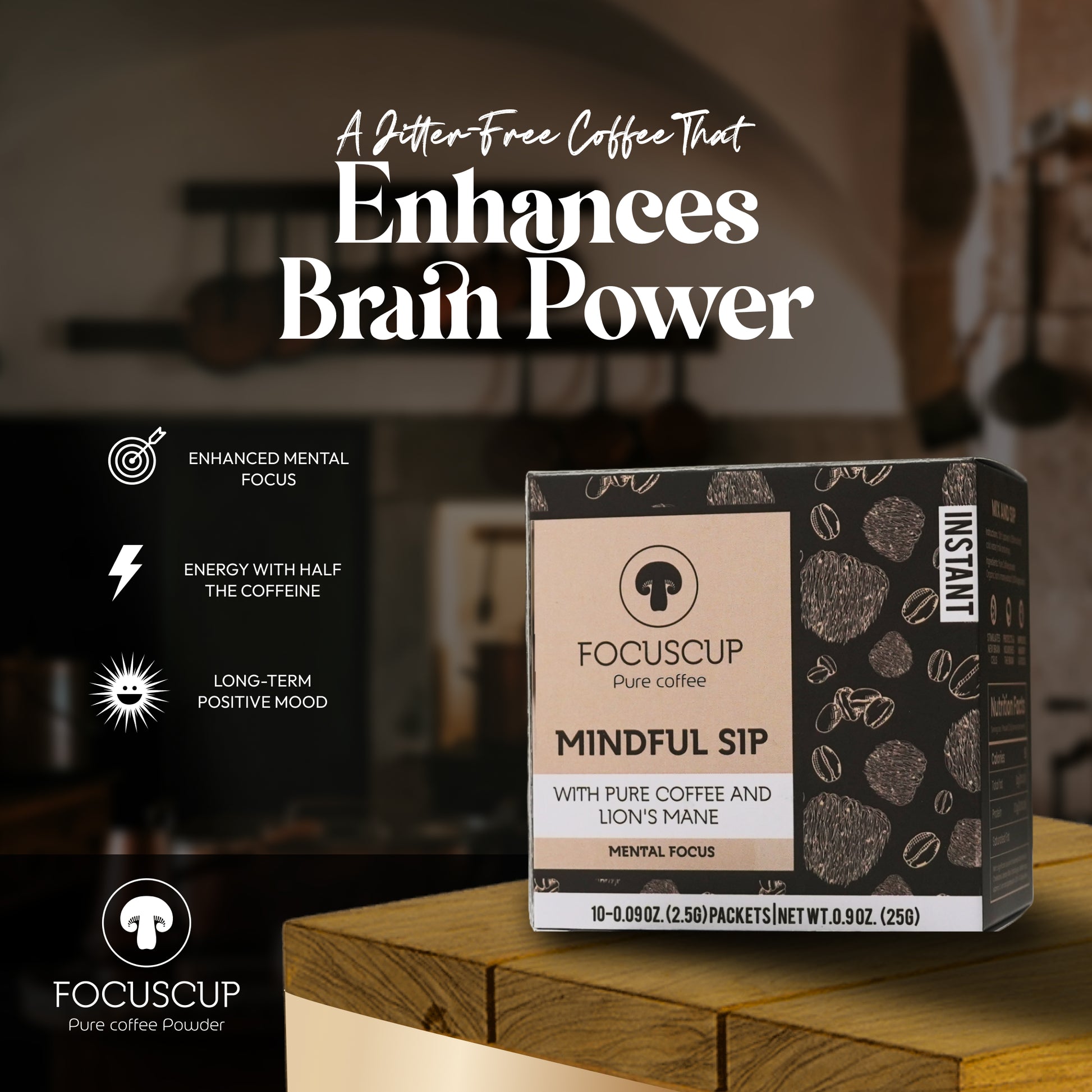 "Focus Cup Lion’s Mane Mushroom Coffee has made a noticeable difference in my productivity levels. I feel more energized and focused, especially during long workdays. Plus, the taste is fantastic!" - Neha S.